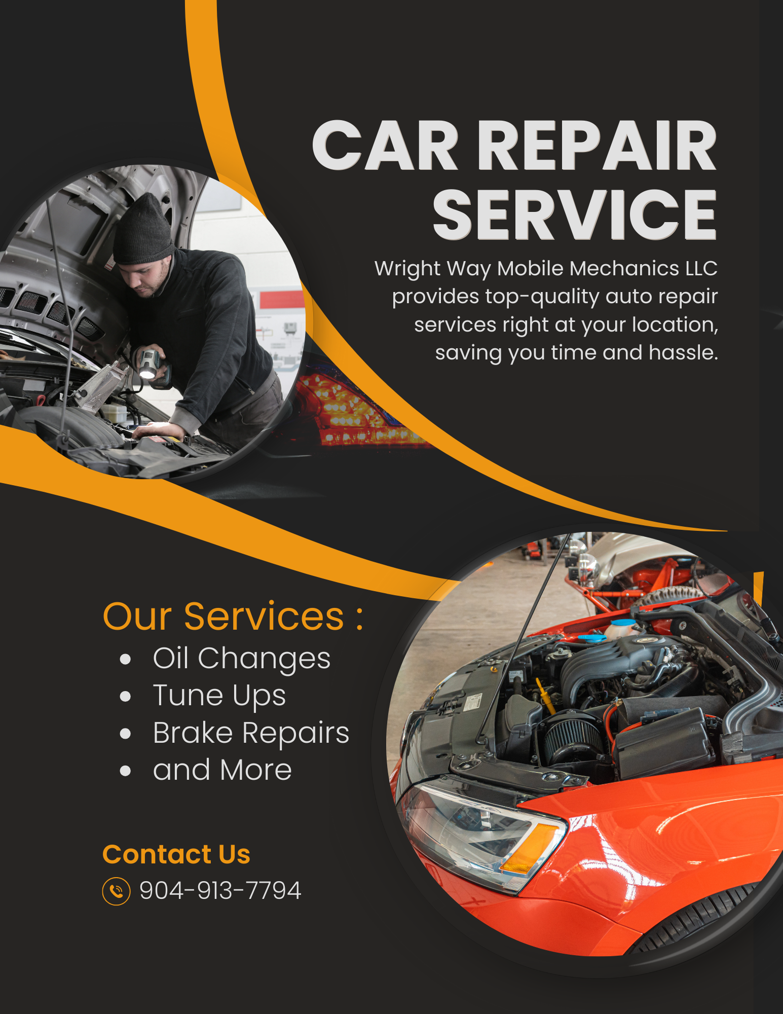 We are your trusted partner for reliable and convenient vehicle care in Jacksonville, FL. Whether you're at home, at work, or on the go, our skilled mobile mechanics bring expert solutions directly to your location, saving you time and hassle. With a commitment to excellence, Wright Way Mobile Mechanics specializes in a wide range of automotive services designed to keep your car running smoothly. From comprehensive auto repair to routine auto maintenance, our experienced auto mechanics handle it all with precision and care. If your car needs an urgent fix or preventive care, we've got you covered. We also offer thorough auto inspection services to identify potential issues before they become costly problems, ensuring your safety and peace of mind on the road.
